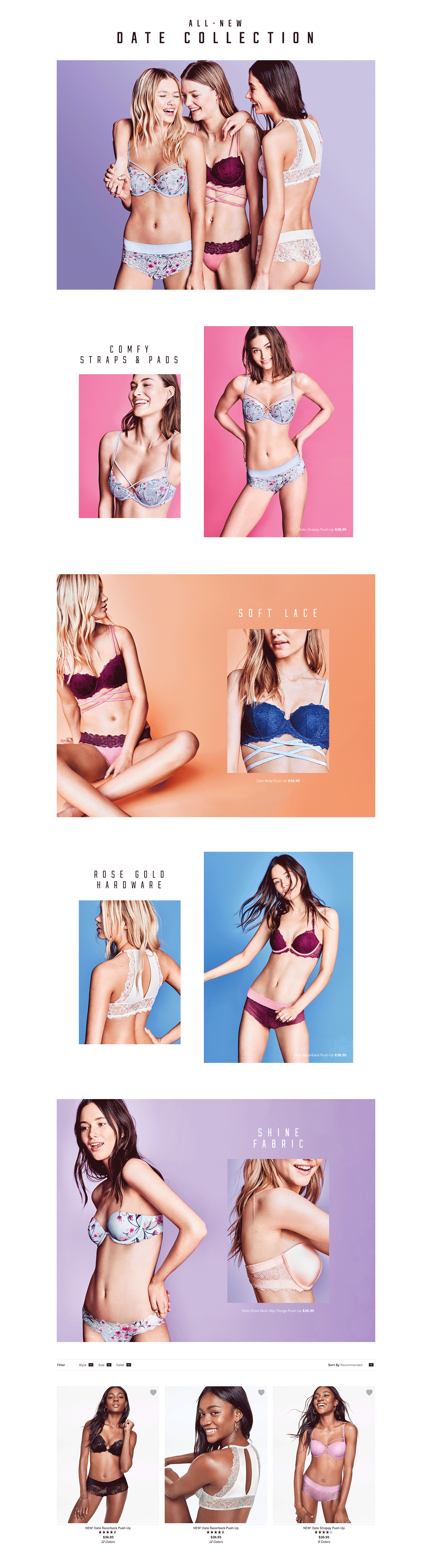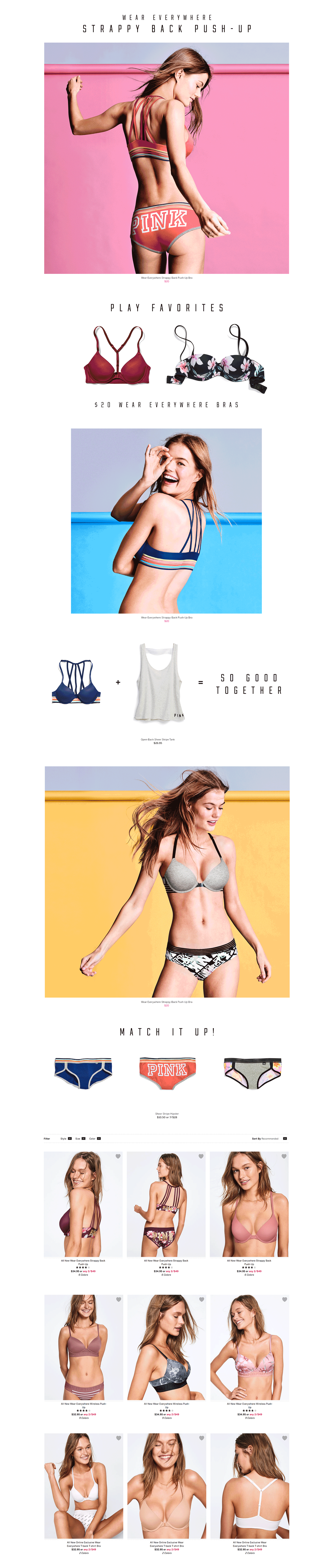 PINK bra launches evoke youthfulness, comfort and support. The intent of these campaigns is to highlight product attributes, outfitting, colors & prints and fabrication.